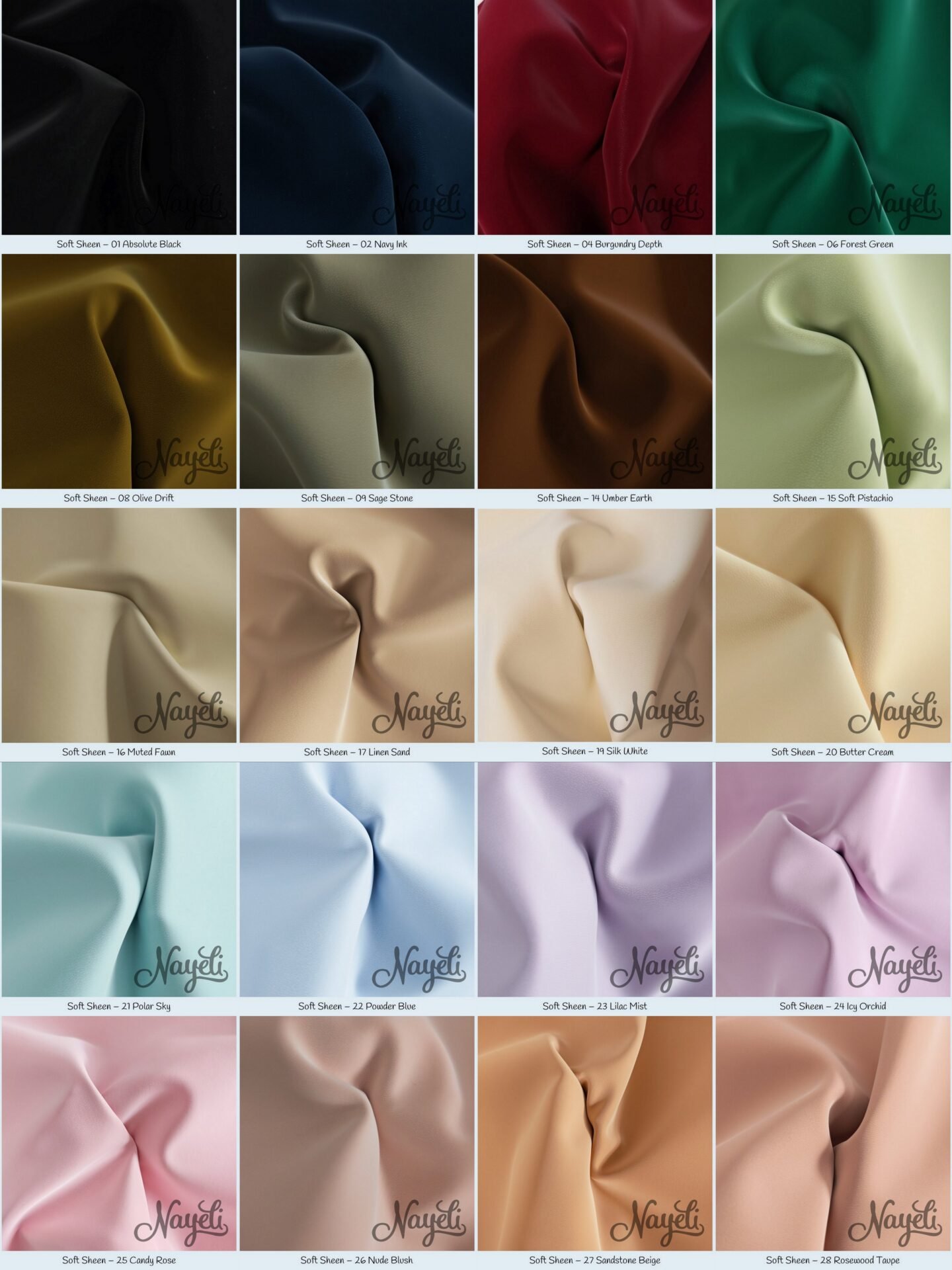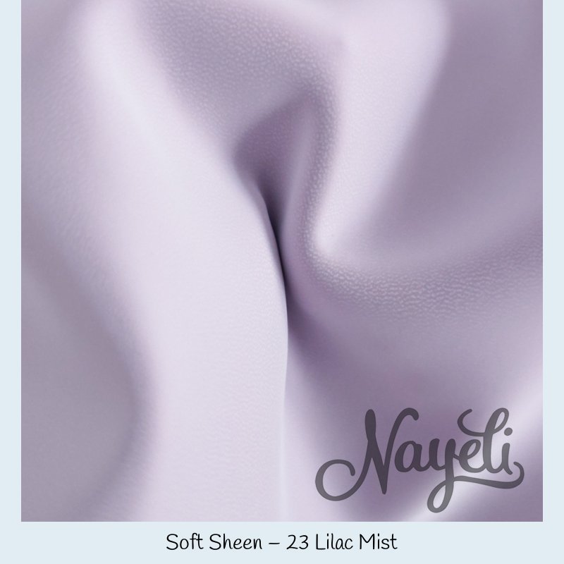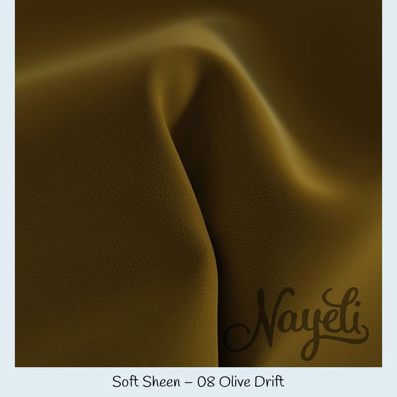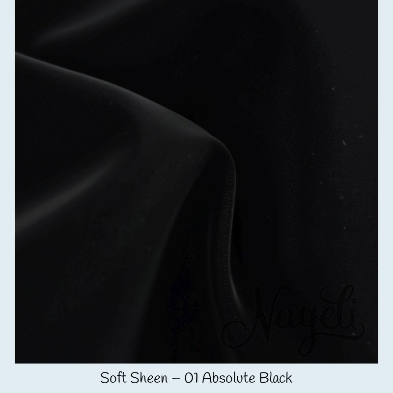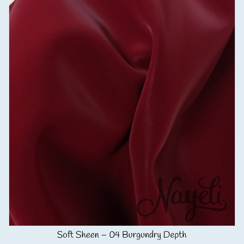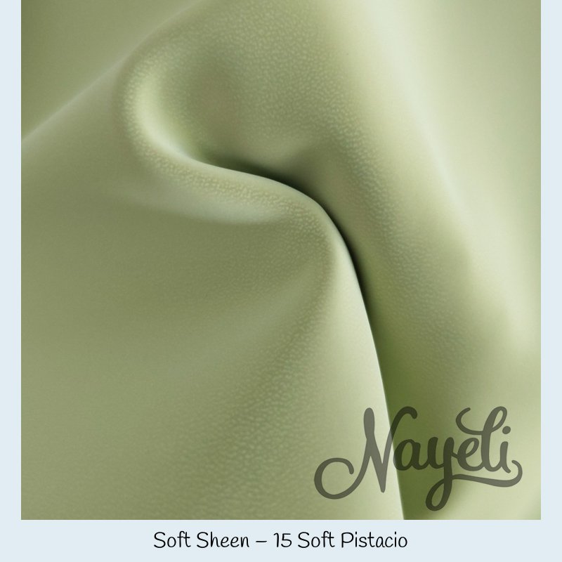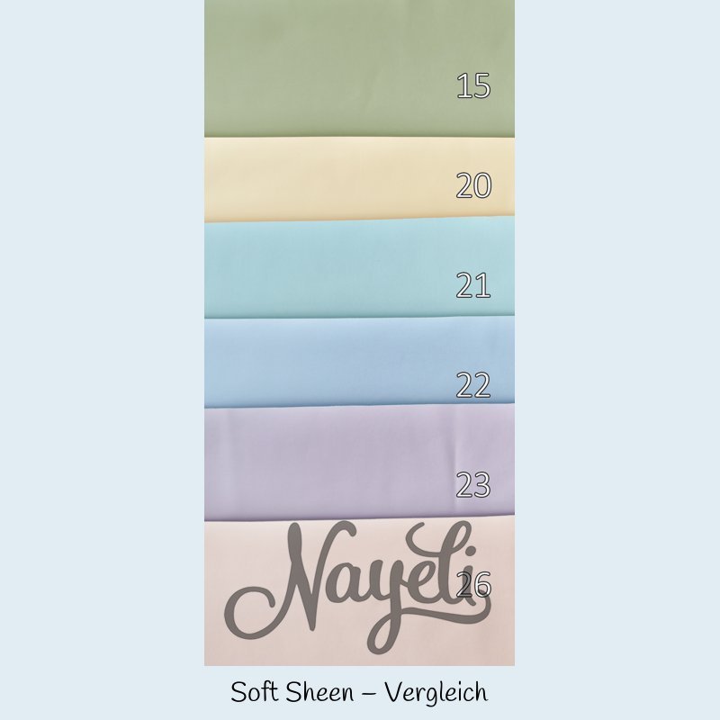 Soft Sheen überzeugt mit einer komplett glatten Oberfläche und einem deutlich sichtbaren, intensiven Schimmer. Das Material reflektiert Licht kraftvoll und lebendig – je nach Lichteinfall wirkt es weich fließend oder fast spiegelnd.